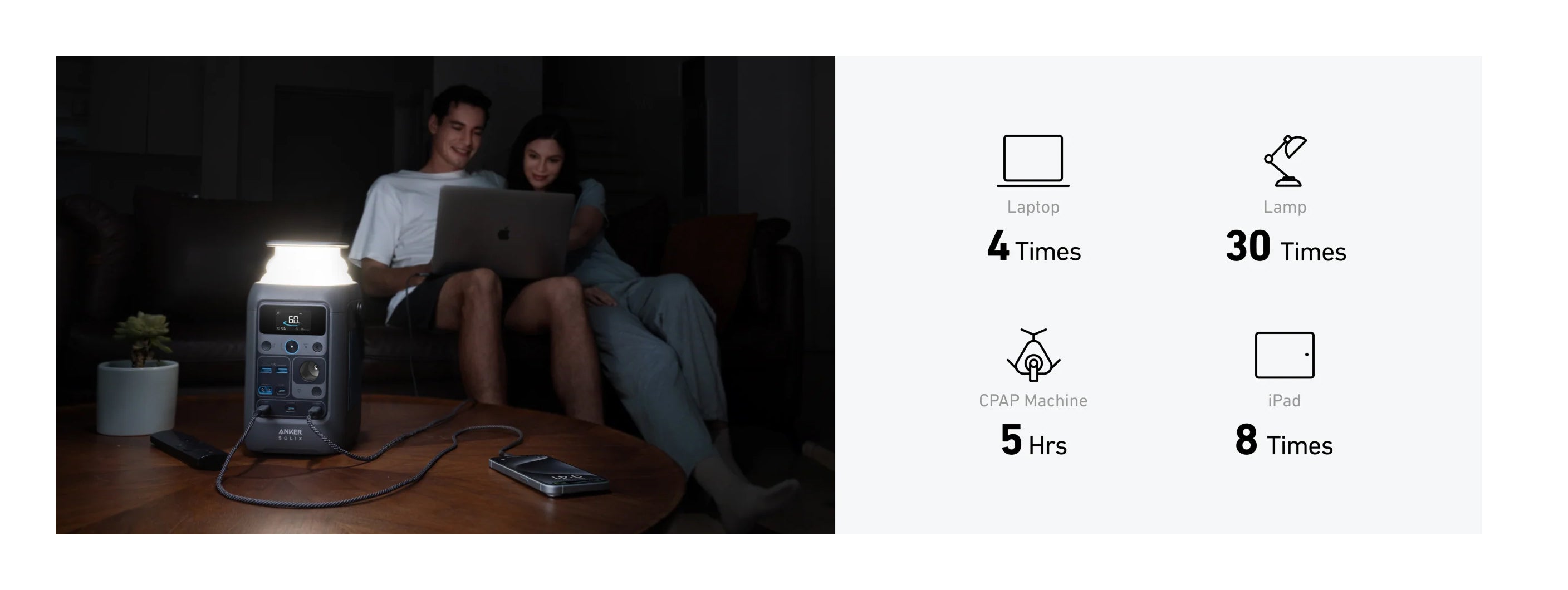 Solar-Ready for Sustainable Power: Harness the power of the sun! It's compatible with Anker 100W and 60W solar panels (sold separately) for eco-friendly and off-grid charging – ideal for camping or emergencies.